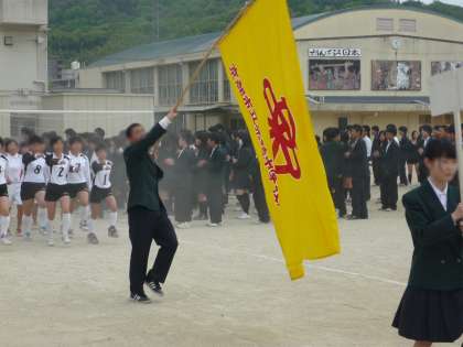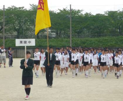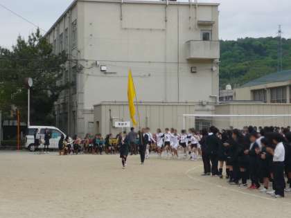 「行進でも他の学校に負けない!」という意気込みで練習を重ねてくれた成果が激励会にも発揮され、吹奏楽部の演奏をバックに立派な行進を見せてくれました。校長先生の激励のお話の後、体育委員長からも激励があり、選手宣誓、そして各部からの決意表明が行われました。