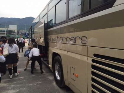 各クラスバスに乗車し、予定通り学校を出発し、伊丹空港へ向かいました。