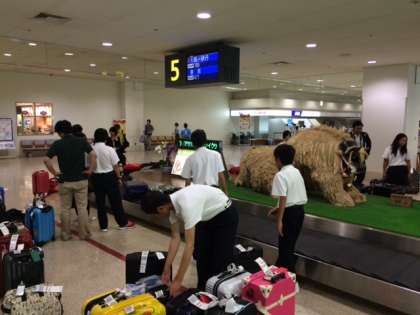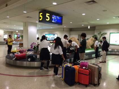 更新がおそくなってすいません。無事、飛行機は、那覇空港に到着です。せいとは、ターンテーブルから自分たちの荷物を探して、取り上げています。すべてが経験です。