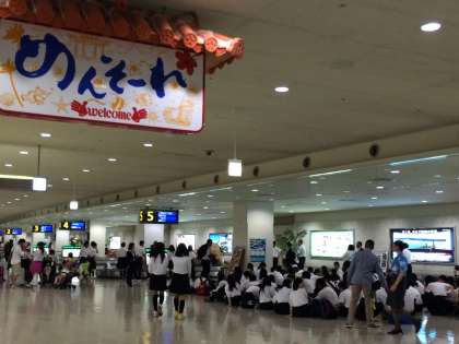 空港に到着し、全体で整列をしています。いよいよ沖縄での修学旅行が始まりです。