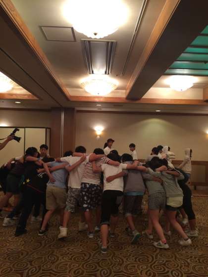 クラスで円陣を組み、気合を入れています。