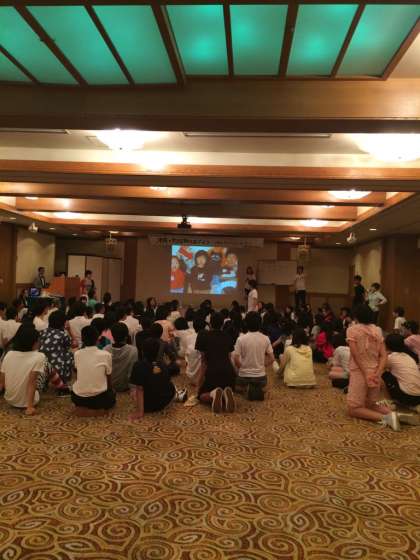 「わたしは、誰でしょうクイズ」で盛り上がっています。プロジェクターを学校から送って、かなり大がかりに行われています。