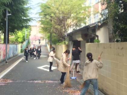 4月18日月曜日、PTAの皆様が、朝の挨拶のために来校され、清掃活動をしていただきました。桜が散ってしまった後、美しくしていただき、気持ちの良い朝となりました。