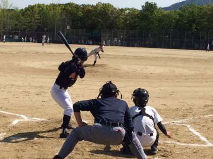 4月30日9時から、野球部は勧修寺グラウンドにて、春日丘中と対戦しました。初回の相手投手の立ち上がりを攻め、先取点を取りましたが、その後、逆転され1対11の大差で敗れました。一つ一つのアウトを着実にとるために、自信をもってプレイできるよう、日々の生活面から鍛えなおしてください。