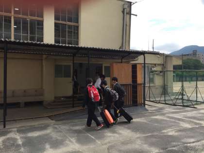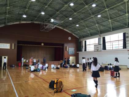 5月26日(木)〜5月28日(土)の2泊3日の予定で、修学旅行に出発します。天候に恵まれ、思い出深いものになればいいと思います。7時30分学校に集合し、8時30分にバスで京都駅に向かいます。9時56分の新幹線で静岡駅に向かいます。一日目は、河口湖で自然体験学習を行います。生徒の皆さんが、大きな荷物を持って、登校してきています。