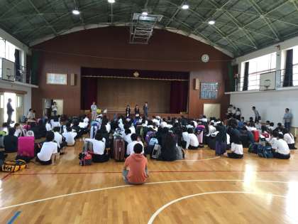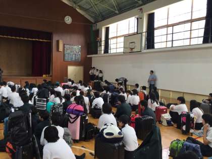修学旅行実行委員会が中心となり、今まで準備してきました。生徒たちの手で修学旅行を進めていきます。結団式の様子です。