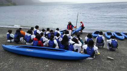 カヌー体験です。ラフティングと違い、2名1組で乗ります。バランス感覚が大切なのでしょうか?