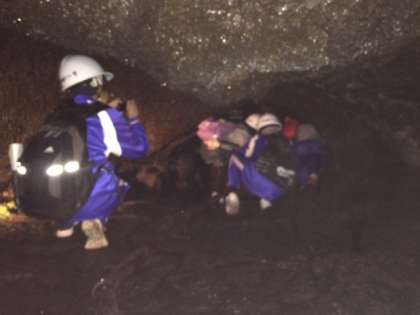 樹海探検。かなり暗くて、涼しいどころか、寒さを感じるくらいだったそうです。