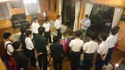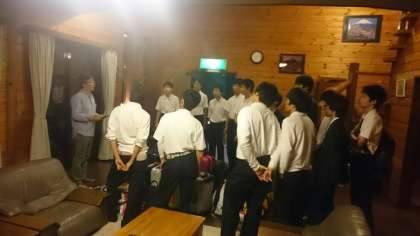 続々と各ペンションに到着して、オーナーの方とお会いして挨拶をしているところです。ちょっと緊張気味の人もいるかもしれませんが、すぐに打ち解けることができると思います。