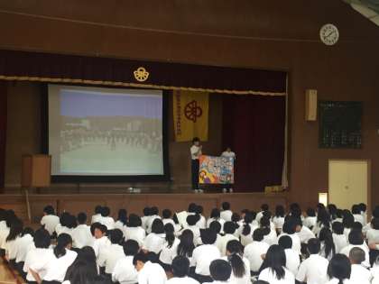 6月15日(水)5・6限に生徒総会が行われました。生徒会本部のマニフェスト発表に始まり、各クラスが学級旗を掲げての学級紹介、生徒会決算及び予算案、委員会紹介等、司会の生徒によるスムーズな進行により、無事終了しました。