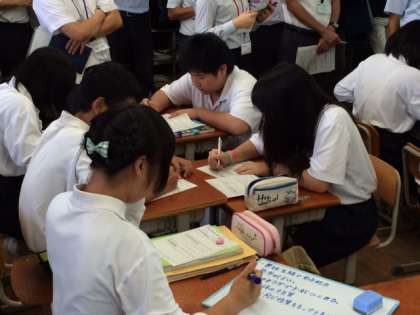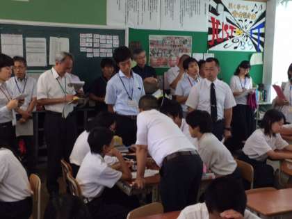 平成28年8月30日(火)午後より、山科醍醐地域の中学校において、授業研修が行われました。本校は3年生の理科の授業を公開しました。今年から公立高等学校にも、呼びかけ連携を深めることができました。アクティブ・ラーニングを取り入れ、グループで話し合いながら授業が展開されました。