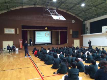 平成29年2月13日(月)6限、本校体育館にて、「認知症あんしんサポーター講座」を実施しました。京都市南部包括支援センターから講師の方が来校し、1年生を対象に、認知症についての正しい知識、接し方などを学びました。常に周りの人の気持ちを考え、正しく判断し行動できるように生活に活かしてください。