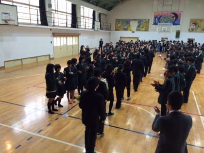 感謝の花束が贈呈され、花道から本校を後にしました。
