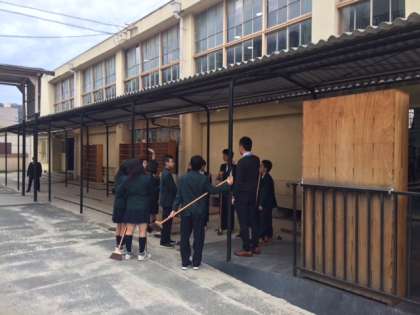 入学式に向けて、2・3年生の生徒が会場準備、歓迎の言葉の練習、清掃にがんばってくれました。