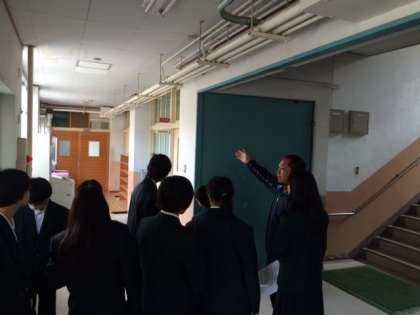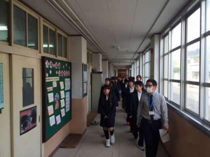 4月10日(月)1限、1年生は校内を学級ごとに、担任が引率してオリエンテーションを行いました。給食配膳室、図書室、職員室など学校生活を安心してスタートできるように、案内されました。2列に並んで、しっかりと話を聞く姿勢は素晴らしいです。