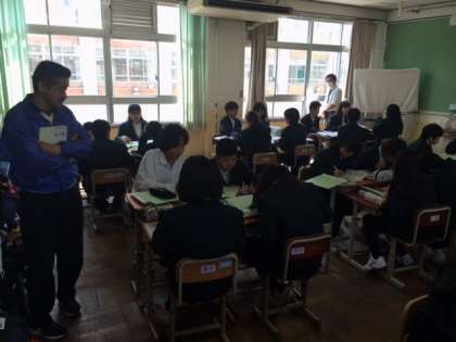 数学もグループになり、課題解決のため、考えたことを発表していました。英語はテレビモニターに映ったイラストを見ながら、発音しコミュ二ケーションしていました。数学は教員が2名で教えています。