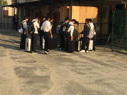 早朝の集合時間となりましたが、みんな元気に登校してきました。好天にも恵まれ、素晴らしい修学旅行となるでしょう。