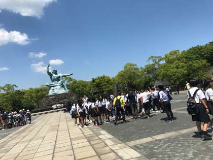 平和祈念公園に到着しました。学級写真を撮って、原爆資料館で班ごとに平和学習をします。