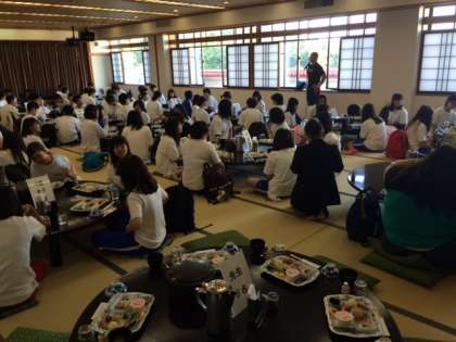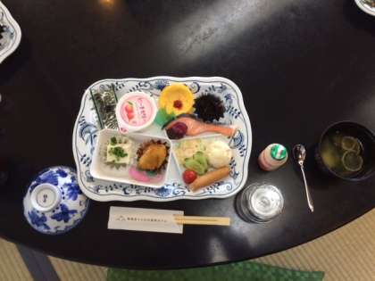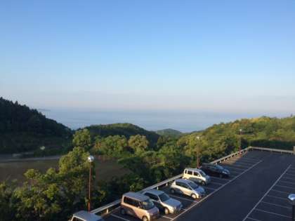 おはようございます。修学旅行2日目です。朝から天候に恵まれ、すばらしい景色を臨みながらの朝食です。