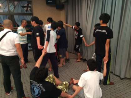 人間知恵の輪です。修学旅行委員がレクリエーションを盛り上げてくれたみたいです。