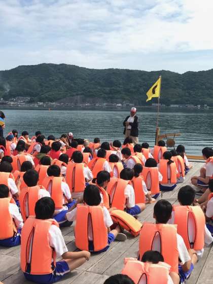 ペーロン体験です。まず、全体で説明を聞いてから体験です。