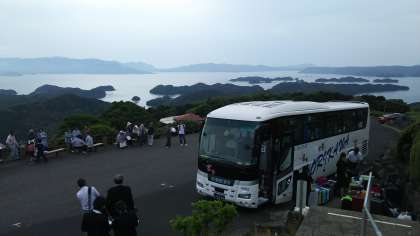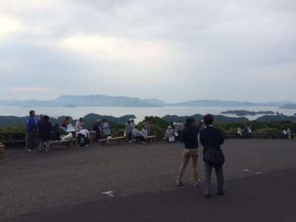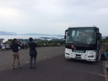 民泊体験場所の長串山公園に到着です。今から、対面式です。
