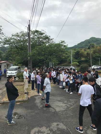 離村式の様子です。民泊でお世話になった方々とのお別れです。いろんな経験もでき、いろんなお話もできたようです。一日だけの滞在となりましたが、いい思い出ができたことでしょう。