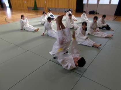 柔道着の着方やたたみ方、礼儀作法などから授業を始めました。
