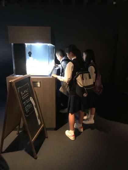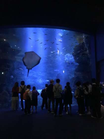 水族館を楽しく見て回っています。