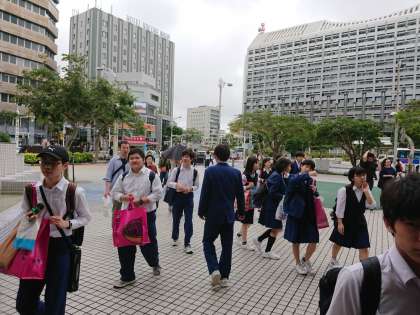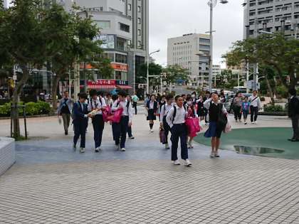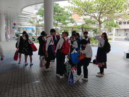 そろそろ班別研修の終了時刻です。各グループが集合場所に戻ってきました。