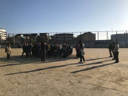 3年生は、校外学習でUSJへ行っています。予定通り10時に入場し、グループごとに親睦を深めています。写真は朝の集合の様子です。