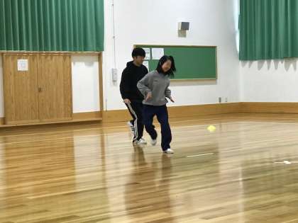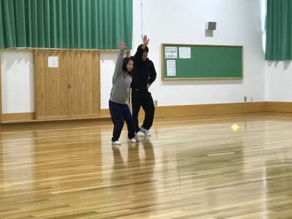 体育の授業でオリジナルダンスの発表しました。難しい振りやステップをとても上手にこなしていました。写真はその様子です。