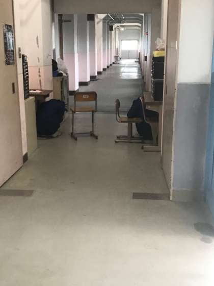 先日行われた避難訓練の続きの写真です。生徒たちは一生懸命頑張っていました。
