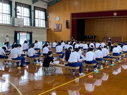 6月12日金曜日、3年生で「進路について」の学年集会が行われました。心構えやあと10ヵ月間のスケジュール等、概要が説明されました。