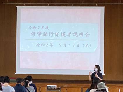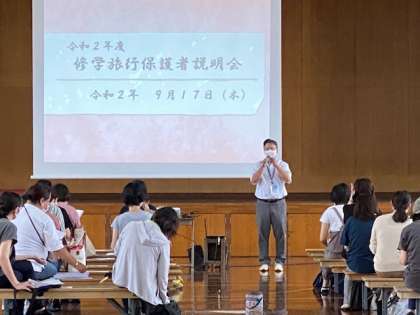 修学旅行説明会に、多くの方にご参加いただきありがとうございました。修学旅行の日まで、健康管理に気をつけていきましょう。ご理解とご協力よろしくお願いいたします。