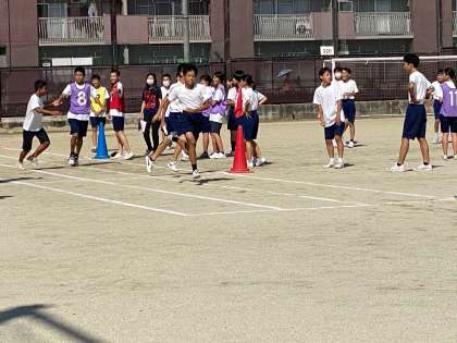 全員リレーと男はサッカー、女子はポートボールの練習をしました。