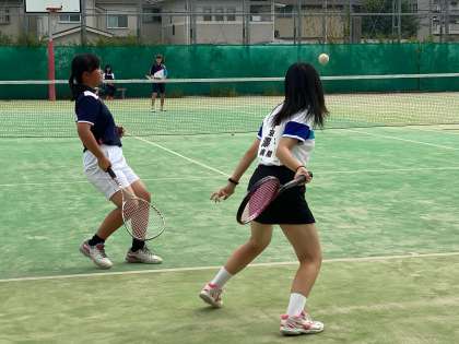 10月3日(土)上川中学校にて女子ソフトテニス部の新人戦が行われています。2つのペアの試合の様子を紹介します。