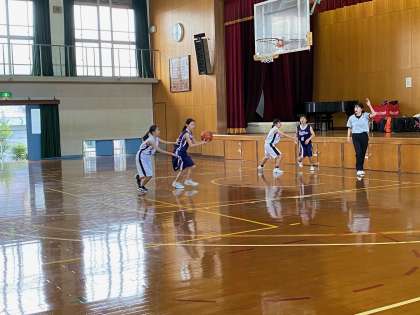 11月1日(日)桃陵中学校体育館にて、女子バスケットボール部の新人戦が行われました。対戦相手は、聖母中学校でした。39対15で勝ちました。