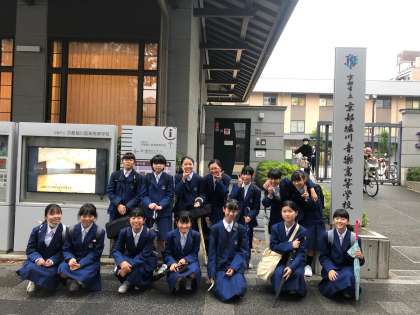 初舞台を終え、京都堀川音楽高等学校前で記念写真です。