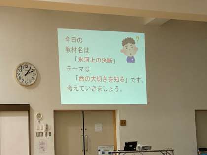 教材内容は、2枚目の写真にあります。究極の選択肢が2つあります。3枚目の写真のような方法で、生徒は意思表示をします。