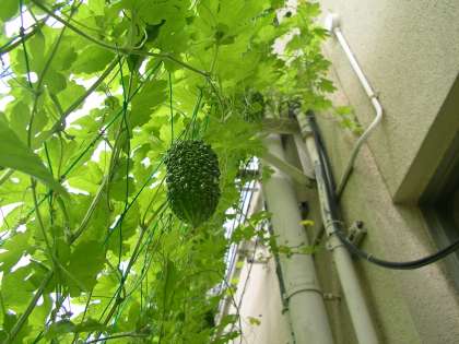 苦いですが、夏ばてには効きそうなゴーヤですが、今年も実をつけ始めました。今年のゴーヤは少しずんぐりむっくりな体型ですが、なかなかいけますよ。