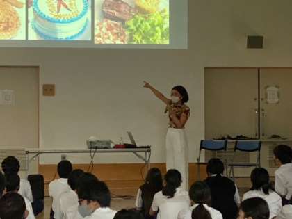畑中さんはパラグアイに2年間行ってこられました。パラグアイの場所や日本とのつながりなど見所もあわせて紹介していただき、実際にご自身が協力隊員として赴任された学校の様子を知り、日本との違いなどを知ることができました。現地の人との交流を通じて見られた成果や課題をSDGsの視点からも掘り下げていただき、世界に目を向けるきっかけとなりました。