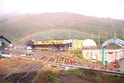 雨が降っていますが、虹が出ています。