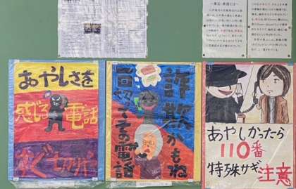 特殊詐欺撲滅の啓発ポスターを掲示しています。伏見警察署の事業に応募しました。