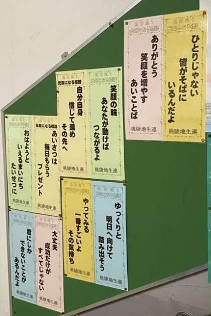 選ばれた10作品をポスターにし、校内と地域の教育機関、地域の地生連の掲示板に掲示しました。