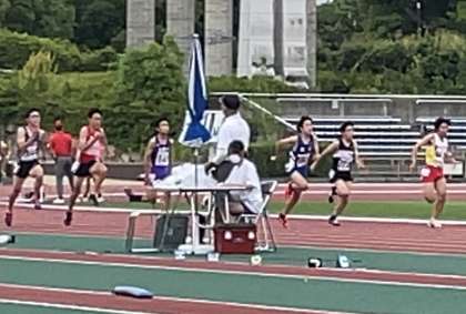 6月18日(土) 京都市中学校選手権総合体育大会陸上競技の部が「たけびしスタジアム京都」で開催されています。天候に恵まれ,1人1人が目標達成に向けて粘り強い走りを見せてくれました。写真は、400m,100mの写真(3年生出場)です。