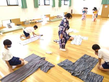 9月20日(火)、日本の衣文化を理解し、継承する大切さに気づくことができるをテーマに、和装教室が実施されました。生徒からは、「和服の中でもカジュアルなのに、想像以上に着るのが大変だった」、「本当に直線に切られた布から作られていて驚いた」、「とても楽しかったけど、着るのが一瞬だけだったので残念だった」などの声が聞かれました。