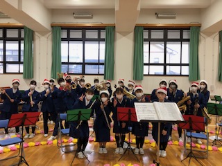 休日にも関わらず、大変多くの皆様に来場していただき感謝しています。1・2年の新体制になってから初めて練習した7曲を心を込めて演奏しました。少しでも温かい気持ちになっていただき、良い年を迎えていただけたら嬉しいです。これからも発表できる機会がつくれるように練習に励みますので応援よろしくお願いします。