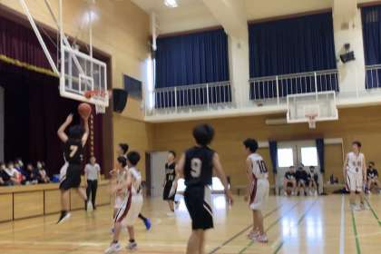 大枝中学校を相手に最後まで粘り強く戦ったものの、残念ながら1回戦敗退となりました。日ごろからチームの課題としていたリバウンドがなかなか取り切れず、チャンスを与える展開となってしまったものの、チームプレーで得点につなげることのできた場面もありました。