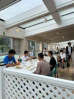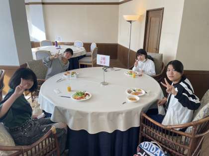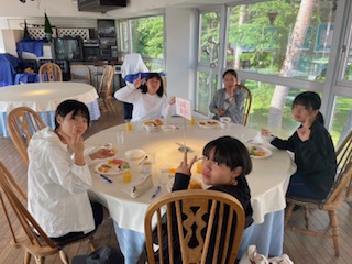 最終日の朝食です。男子は7時から少し時間差で女子が食べています。午前中は選択制のアクティビティがあります。さあ頑張っていきましょう!